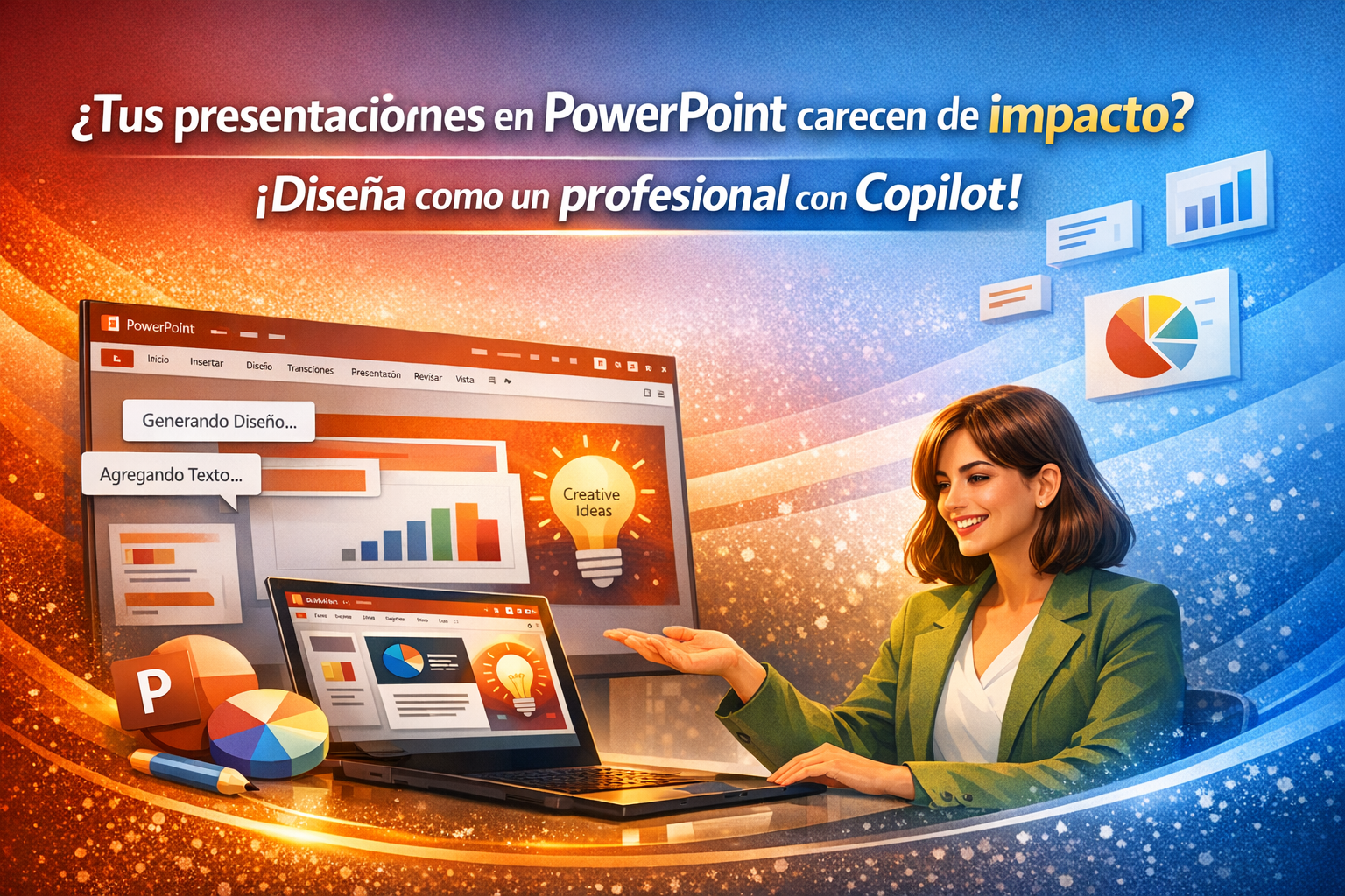 Enseñar a los participantes a usar Microsoft 365 Copilot en PowerPoint para transformar documentos en presentaciones, generar diapositivas a partir de un esquema, crear imágenes y organizar el contenido de manera profesional.